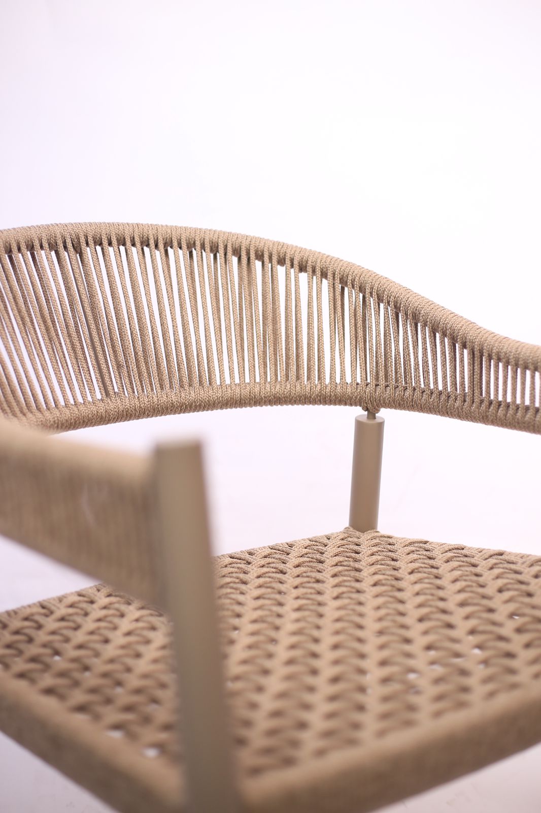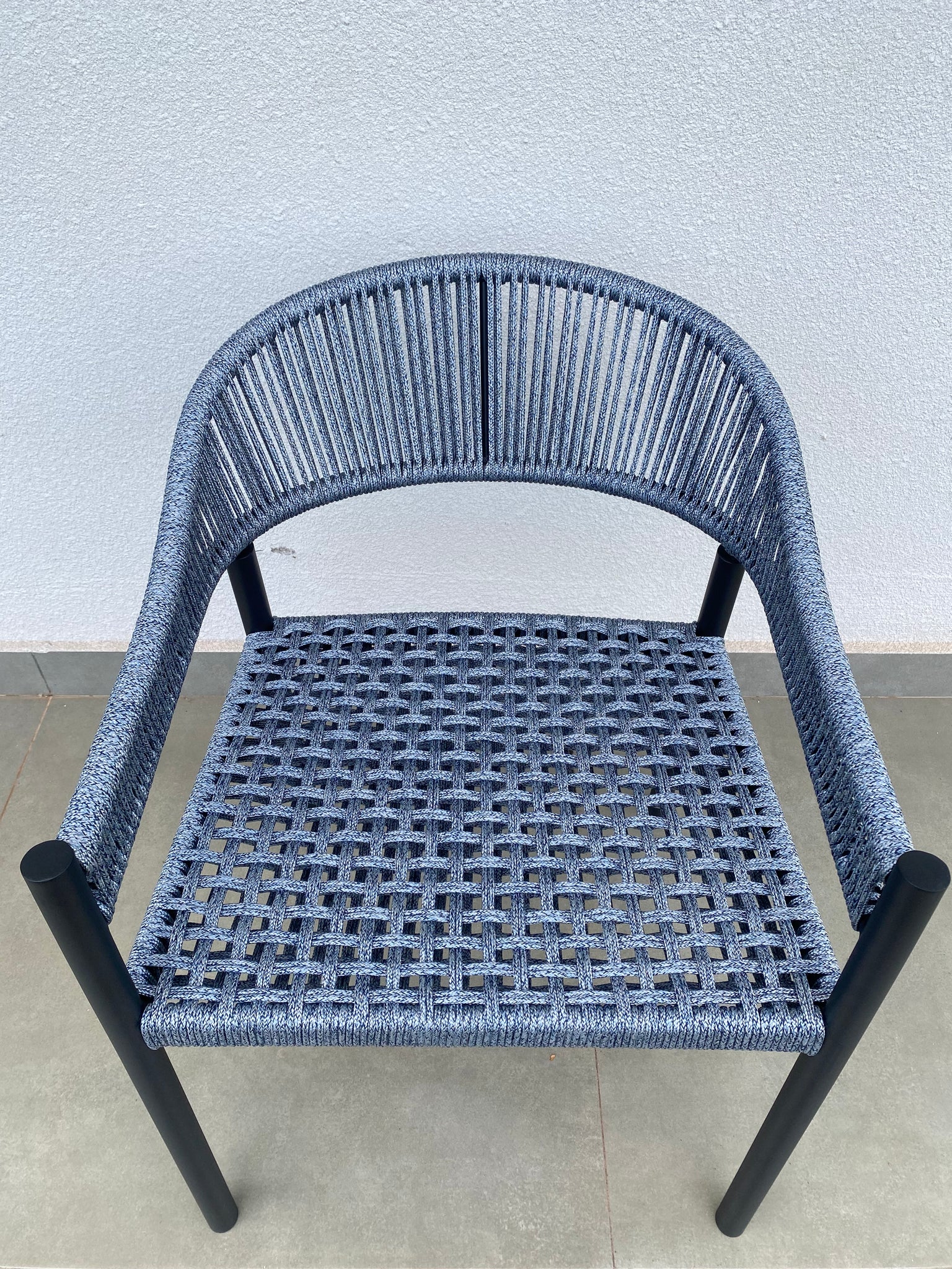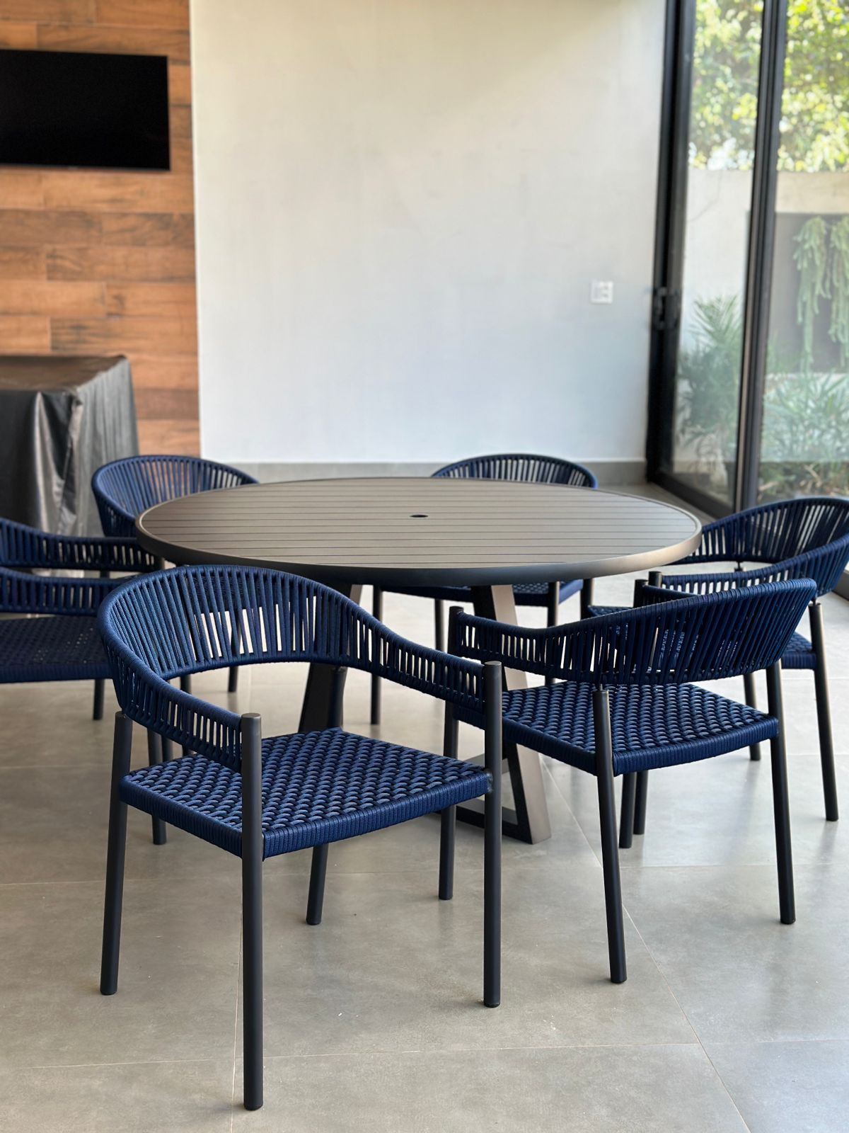 Este móvel é fabricado com estrutura de alumínio soldado e confeccionado artesanalmente com fibra sintética, por isso pode ficar tanto na área interna quanto externa, sendo resistentes a sol, chuva e raios UV. O tecido usado é o AcquaBlock impermeável.